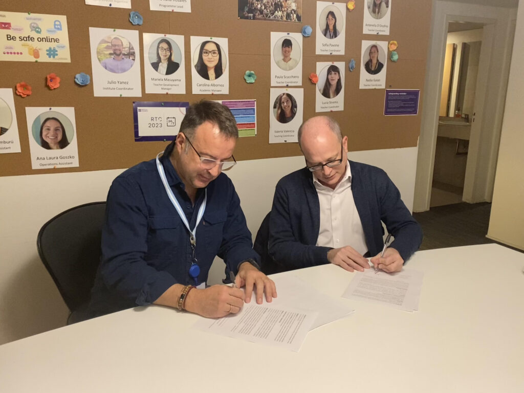 La firma del convenio se llevó a cabo en las instalaciones del British Council Argentina, con la destacada presencia de Robert Chatfield, Country Director, y María Victoria Maineri, Project Manager of English Programmes. Representando a la Universidad, estuvieron presentes Mariano Palamidessi, Rector organizador, y María Pía Delneri, Secretaria de Extensión, Vinculación y Transferencia.