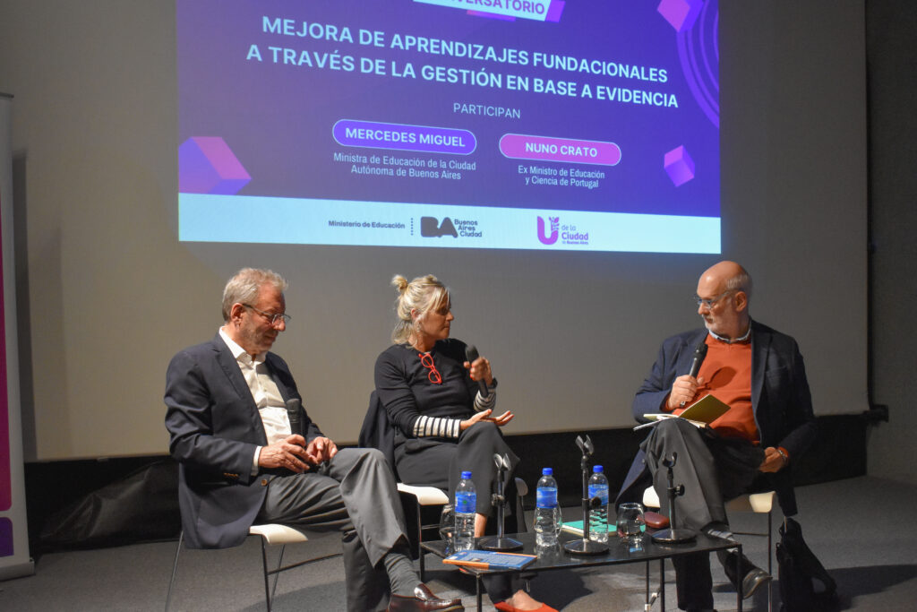 El evento, que contó con el impulso y participación de la rectora, Dra. Florencia Ripani, tuvo el propósito de compartir miradas, aprendizajes y experiencias sobre cómo potenciar la enseñanza, basándose en evidencia. La ministra de Educación de la Ciudad de Buenos Aires, Lic. Mercedes Miguel, y el ex ministro de Educación y Ciencia de Portugal, Dr. Nuno Crato, se reunieron en un conversatorio, protagonizaron un valioso intercambio moderado por el Prof. Lucas Luchilo, director de la Escuela de Educación y Desarrollo Humano de la Universidad.