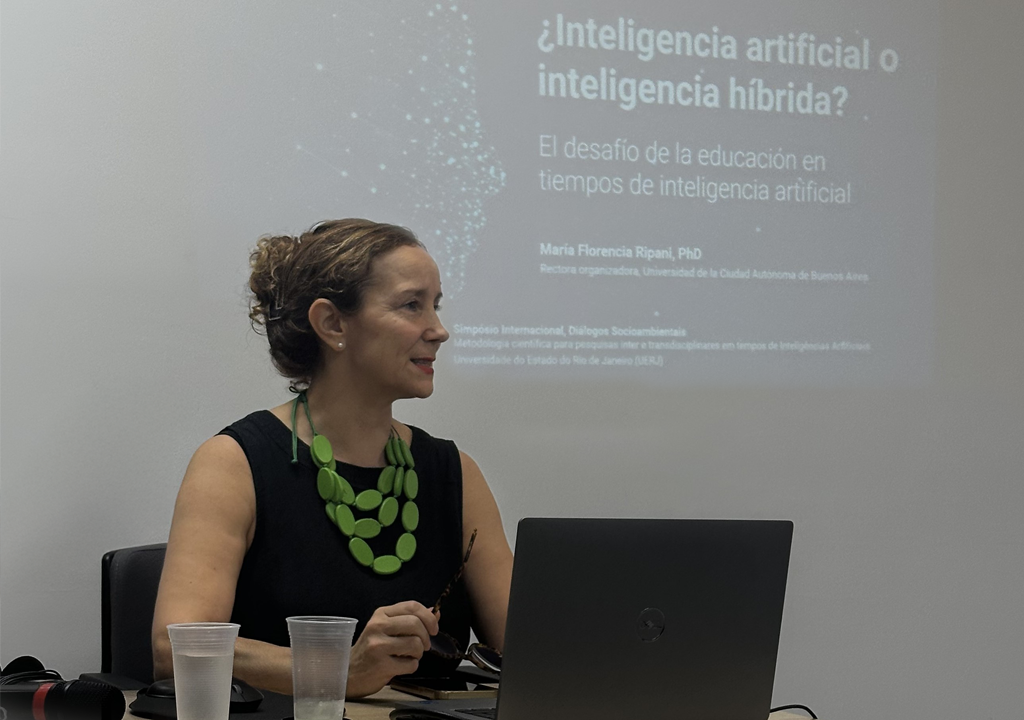 La Rectora Organizadora de la Universidad de la Ciudad Autónoma de Buenos Aires, Dra. María Florencia Ripani, fue invitada como conferencista al Simposio sobre Metodología Científica para Investigaciones Inter y Transdisciplinares en Tiempos de Inteligencia Artificial, que tuvo lugar del 18 al 21 de marzo en la Universidade do Estado do Rio de Janeiro (UERJ), Brasil.
