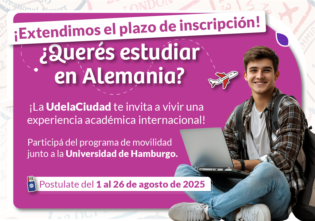 Extendimos el plazo hasta el 26 de agosto. Estudiantes de las Escuelas de Educación y Desarrollo Humano, y de Gobierno y Ciudades podrán postularse para participar de una experiencia académica internacional en la Universidad de Hamburgo.
