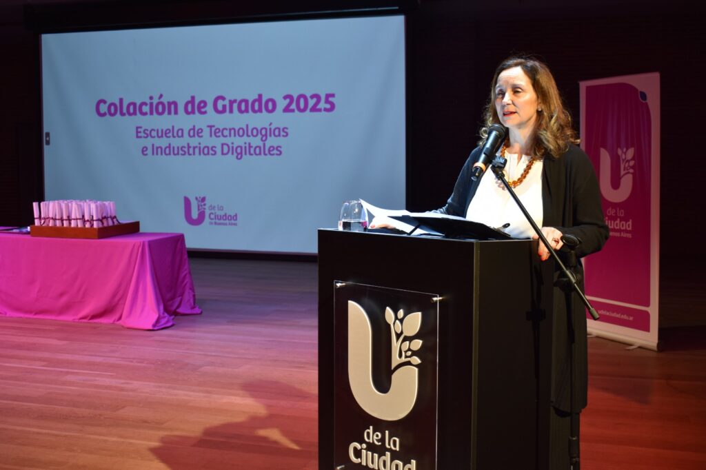 Así fue el mensaje de María Florencia Ripani a los 67 flamantes licenciados.