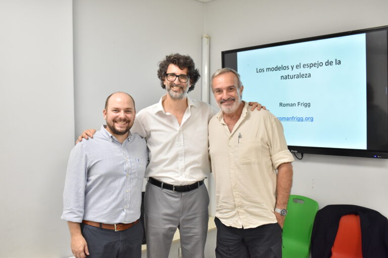 De izquierda a derecha: Emiliano Gentile, Roman Frigg y Hernán Miguel.